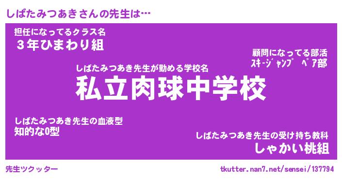 | ヒーロー風カッコイイあだ名 | 『スーパーシバタミツアキ』 |