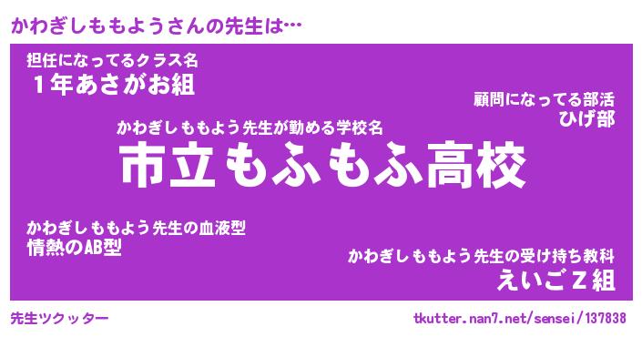 | 肩書あだ名 | 『かわぎしももよう店長』 |