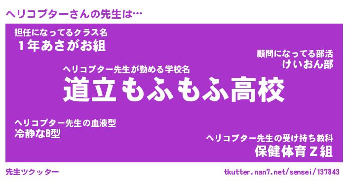 | ヒーロー風カッコイイあだ名 | 『スーパーヘリコプター』『幻影騎士ヘリ』 |