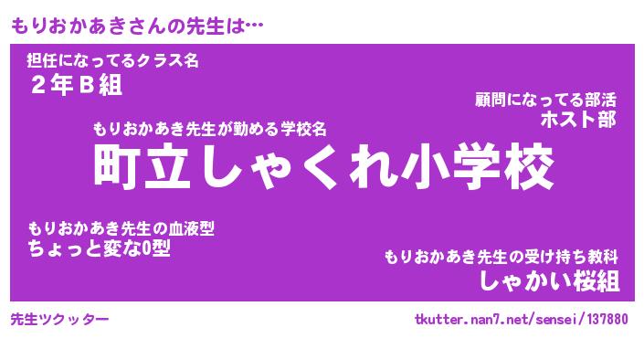 | ヒーロー風カッコイイあだ名 | 『スーパーモリオカアキ』『魔戒騎士モリ』 |