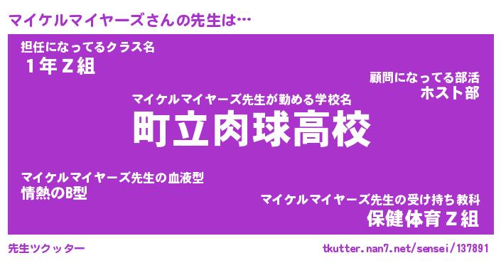 | 欧米人風あだ名 | 『マイケルマイケルマイヤーズ』 |