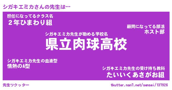 | ヒーロー風カッコイイあだ名 | 『スーパーシガキエミカ』『魔戒騎士シガ』 |