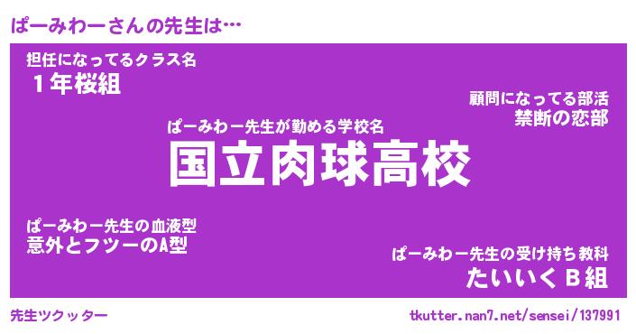 | ヘコむあだ名 | 『ぱーふぇ~』『つくし』『ぱーを』 |