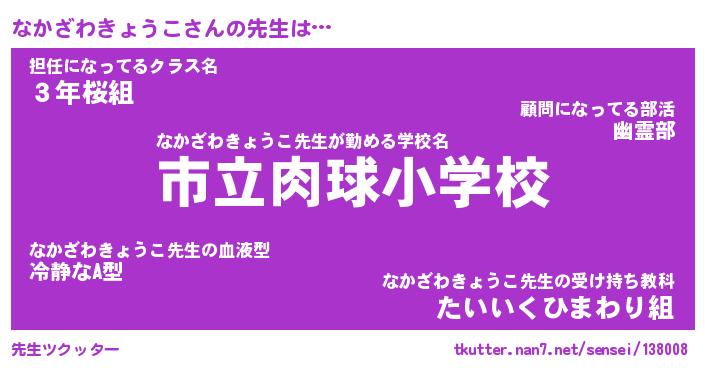 | 女子向けラノベタイトル風あだ名 | 『(仮)なかざわきょうこのやんごとなき事情』 |