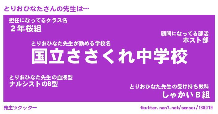 | ヘコむあだ名 | 『とりもー』『豆乳』『とりお』 |