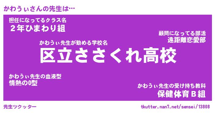 | ヒーロー風カッコイイあだ名 | 『スーパーカワウィ』『炎刃騎士カワ』 |
