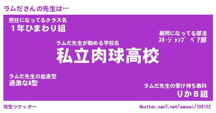 | ヘコむあだ名 | 『ラムふぇ~』『レバニラ』『ラムお』 |