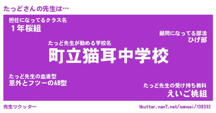 | ファンタジー風あだ名 | 『タッフェル』『エターナルタッドー』 |