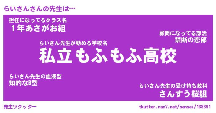 | ヘコむあだ名 | 『らいにゅー』『つくし』『らいっぺ』 |