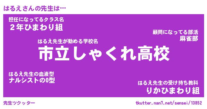 | ファンタジー風あだ名 | 『ハルフェル』『エターナルハルエー』 |
