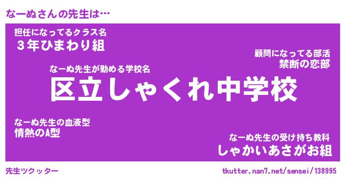| ファンタジー風あだ名 | 『ナーフェル』『エターナルナーヌー』 |