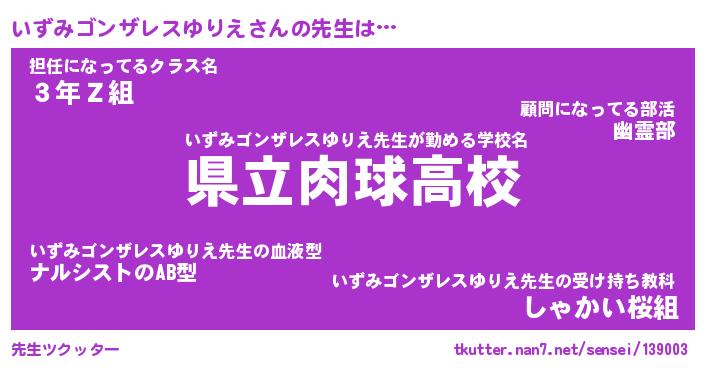 | 伝説のあだ名 | 『不死鳥の竜騎士いずみゴンザレスゆりえ』 |
