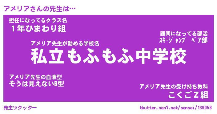 | ファンタジー風あだ名 | 『アメフェル』『エターナルアメリアー』 |