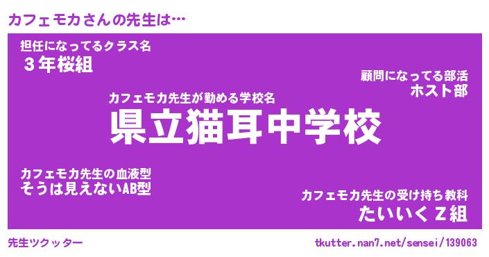 | ファンタジー風あだ名 | 『カフフェル』『エターナルカフェモカー』 |