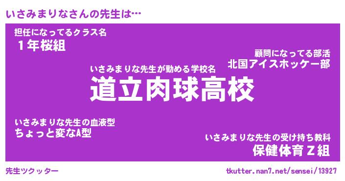 | ヘコむあだ名 | 『いさふぇ~』『つくし』『いさ太郎』 |