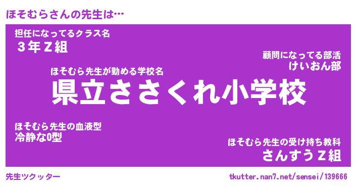 | ヘコむあだ名 | 『ほそもー』『牛乳』『ほそ太郎』 |