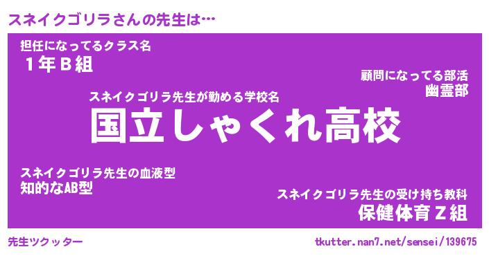 | 男性向けラノベタイトル風あだ名 | 『スネイクゴリラの憂鬱』 |