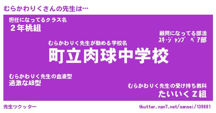| ヒーロー風カッコイイあだ名 | 『スーパームラカワリク』『銀牙騎士ムラ』 |