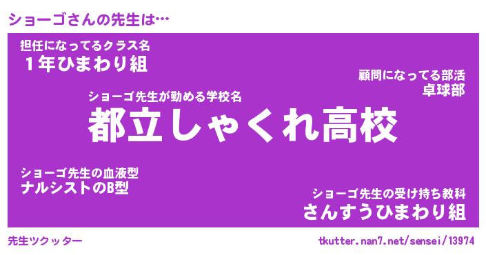 | ポケモン風あだ名 | 『ショチュウ』『ショーダネ』 |
