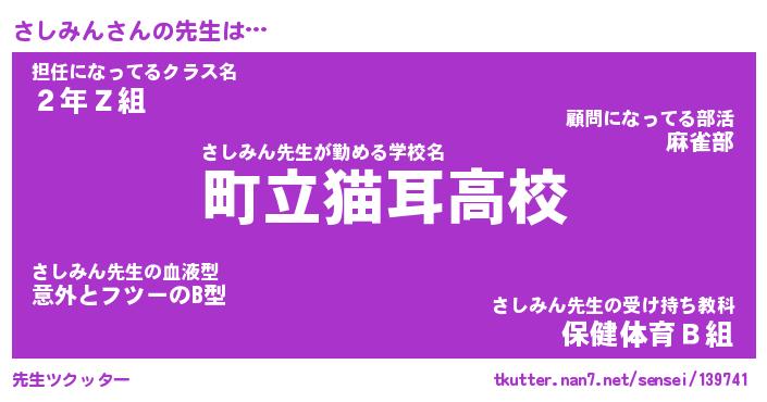| 意味不明あだ名 | 『ペロリンさしみん』『永久保存さしみん』 |