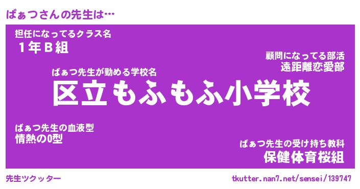| ファンタジー風あだ名 | 『バァフェル』『エターナルバァツー』 |