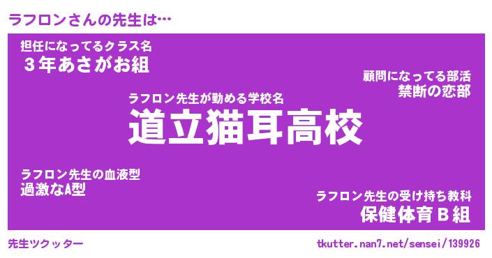 | ファンタジー風あだ名 | 『ラフフェル』『エターナルラフロンー』 |