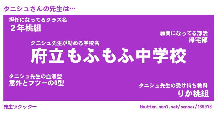| 意味不明あだ名 | 『ペロリンタニシュ』『永久保存タニシュ』 |