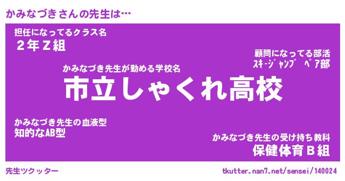 | ヘコむあだ名 | 『かみっふぃ~』『つくし』『かみお』 |