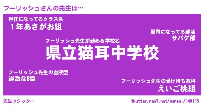 | ヘコむあだ名 | 『フーにー』『つくし』『フー太郎』 |
