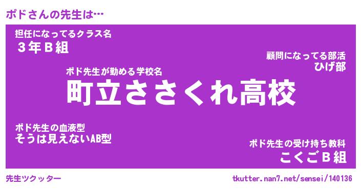 | ヘコむあだ名 | 『ポドもー』『なまこ酢』 |