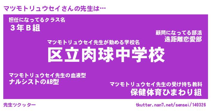 | 意味不明あだ名 | 『ペロリンマツモトリュウセイ』 |