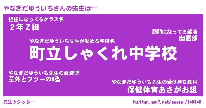| 伝説のあだ名 | 『封印されしスナイパーやなぎだゆういち』 |