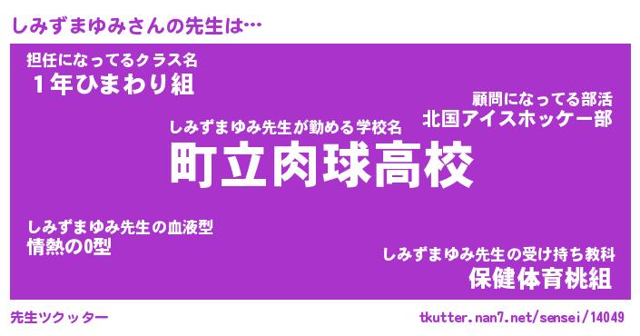 | 意味不明あだ名 | 『ペロリンしみずまゆみ』 |