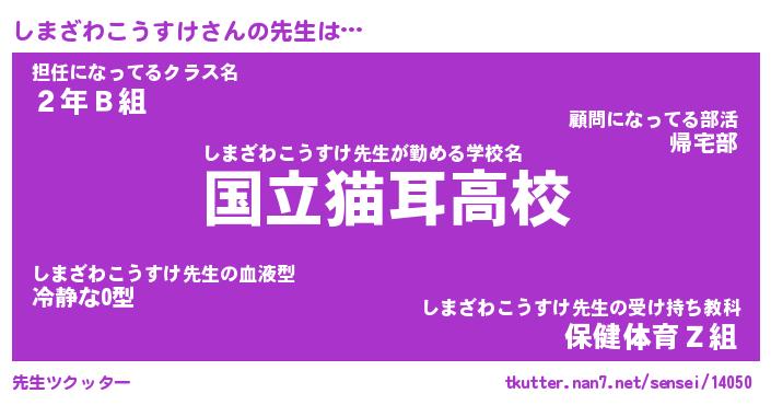 | ヘコむあだ名 | 『しまにー』『なまこ酢』『しまっ子』 |
