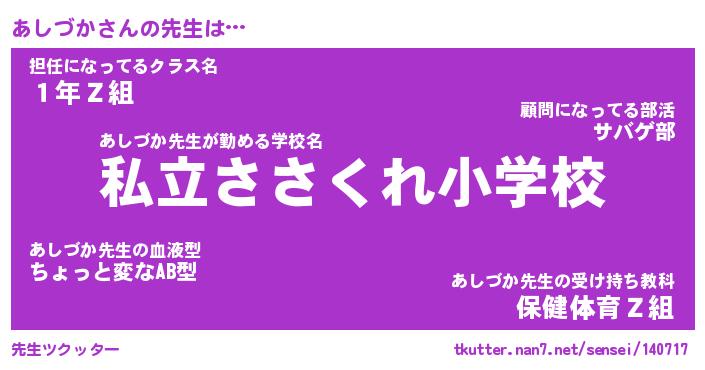 | 意味不明あだ名 | 『ペロリンあしづか』『永久保存あしづか』 |