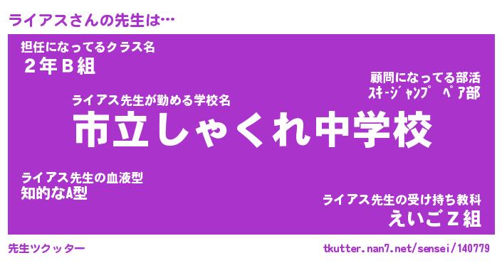 | 意味不明あだ名 | 『ペロリンライアス』『永久保存ライアス』 |
