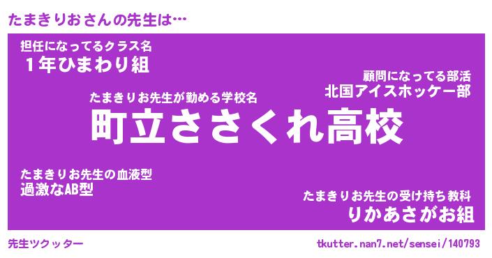 | ヘコむあだ名 | 『たまもー』『つくし』『たまっ子』 |