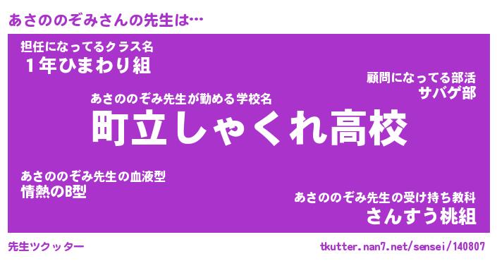 | 伝説のあだ名 | 『封印されしスナイパーあさののぞみ』 |