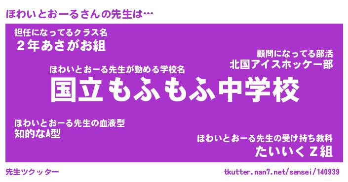 | ヘコむあだ名 | 『ほわにゅー』『牛乳』『ほわ太郎』 |