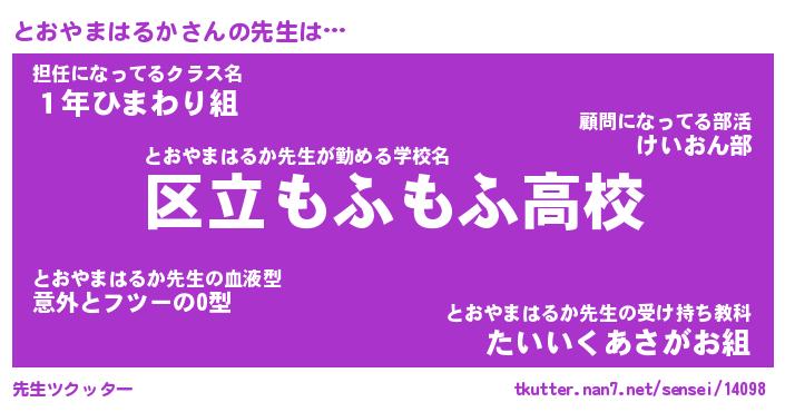 | 胡散臭い通販商品みたいなあだ名 | 『億万長者になれる水晶球…その名も「とおやまはるか」』 |