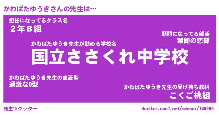 | 胡散臭い通販商品みたいなあだ名 | 『必ず成功する霊験あらたかなお札…その名も「かわばたゆうき」』 |