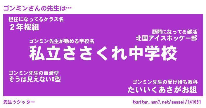 | 意味不明あだ名 | 『ペロリンゴンミン』『永久保存ゴンミン』 |