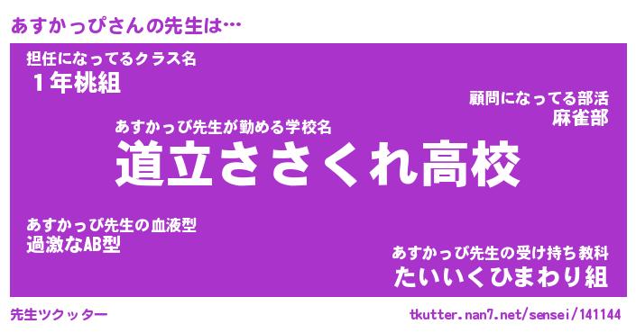 | ヘコむあだ名 | 『あすもー』『つくし』『あすっ子』 |