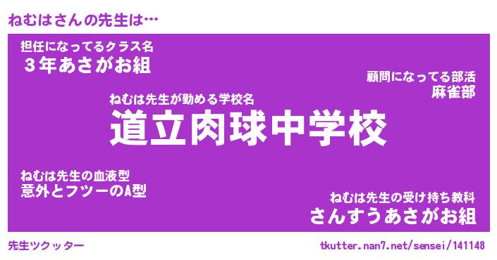 | ヘコむあだ名 | 『ねむふぇ~』『酢こんぶ』 |