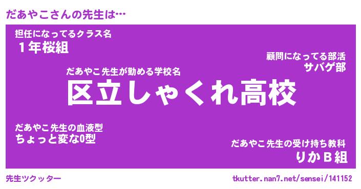 | 意味不明あだ名 | 『ペロリンだあやこ』『永久保存だあやこ』 |