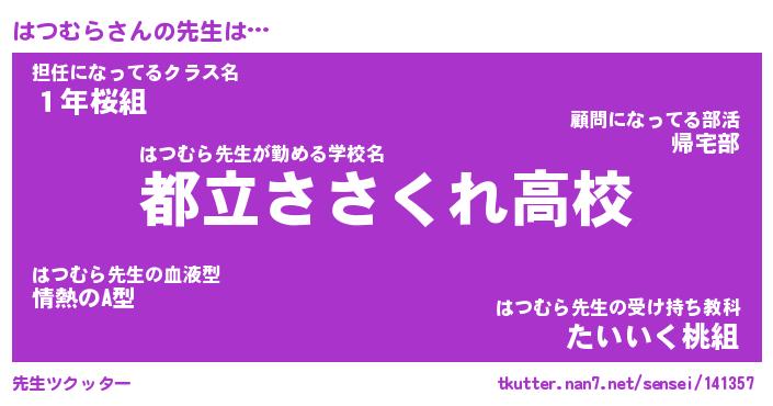 | ポケモン風あだ名 | 『ハツチュウ』『ハツムダネ』 |
