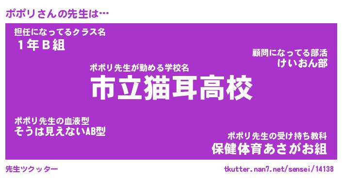 | ヘコむあだ名 | 『ポポにー』『酢こんぶ』『ポポお』 |