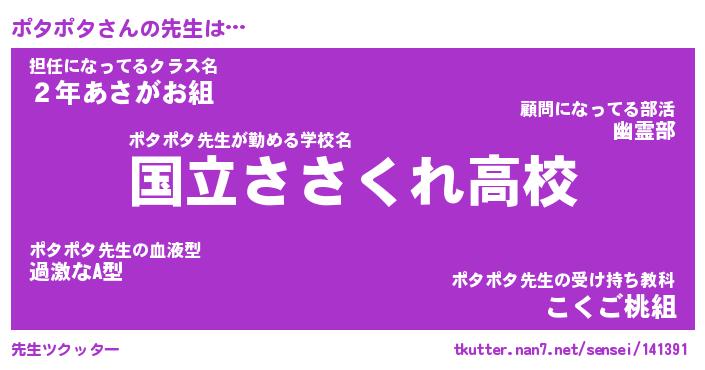 | ヘコむあだ名 | 『ポタもー』『豆乳』『ポタを』 |