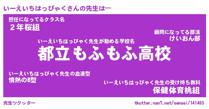 | 意味不明あだ名 | 『ペロリンいーえいちはっぴゃく』 |