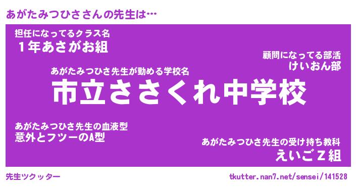 | 胡散臭い通販商品みたいなあだ名 | 『必ず成功する霊験あらたかなお札…その名も「あがたみつひさ」』 |